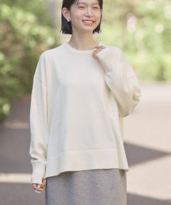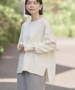 ・暖かい裏起毛やフェザーニットなど冬〜春まで長く着られる構成