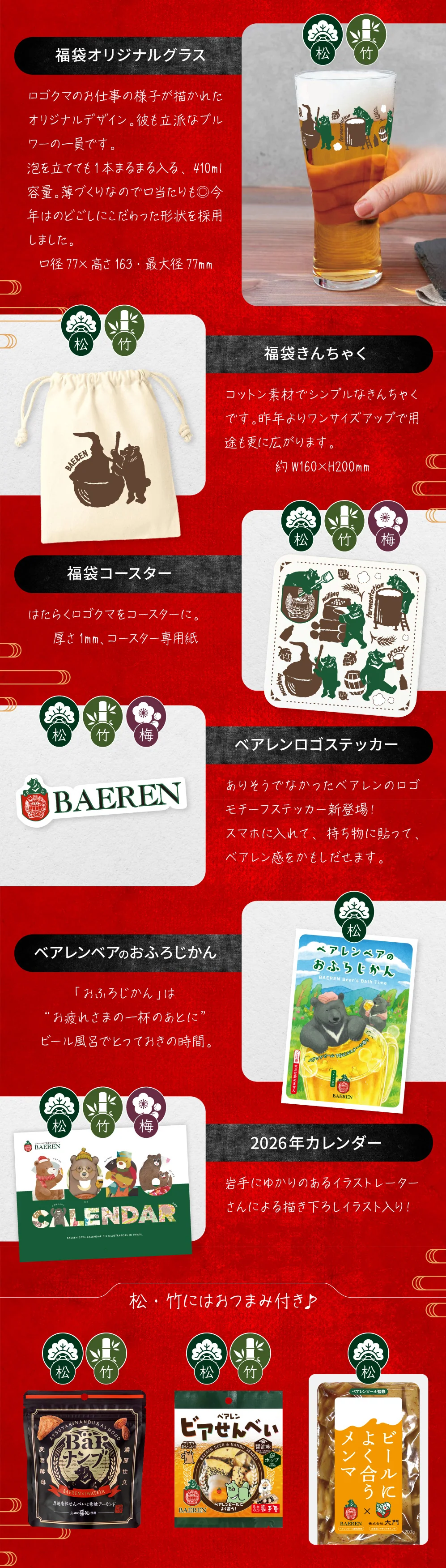 毎年恒例のベアレンビールの福箱2026が登場!松・竹・梅の3種類がラインナップし、ビール好きにはたまらない内容です。