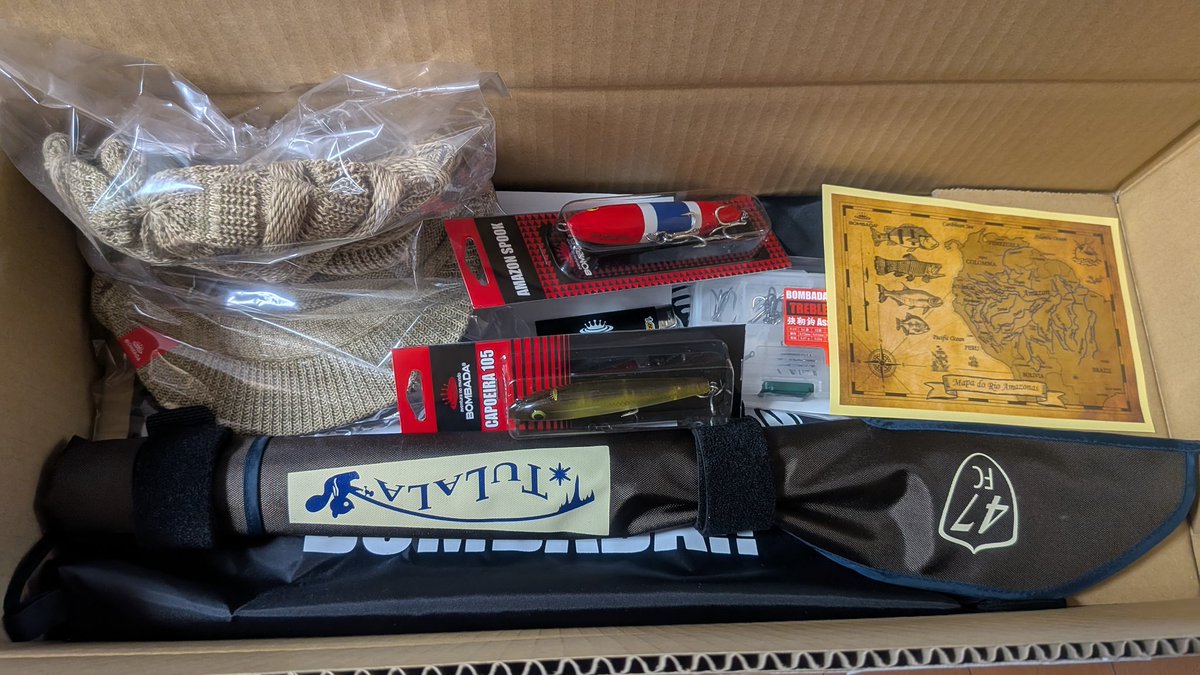 ボンバダ福箱おーぷん。使ったことないジャンルの竿、このまま封印か、それとも使い方を知って楽しむか。 #ボンバダ #福箱