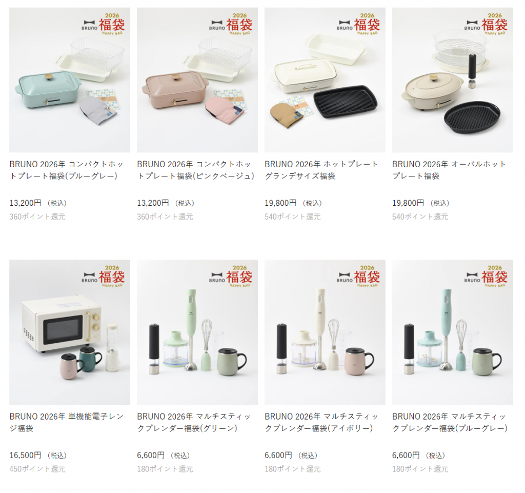 毎年恒例のBRUNOの福袋2026が登場!ホットプレートをはじめ人気のキッチン家電やビューティーアイテムまで全14種類がラインナップ。