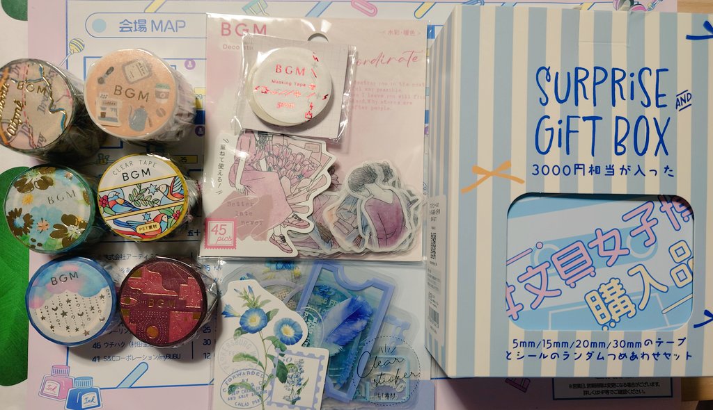 文具女子博#文具女子博購入品 #文具女子博popupin梅田2025 BGMのブースでマステとシールのランダム福袋・女子博 SURPRISE AND GIFT BOXの中身