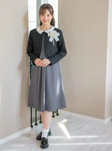卒業式を控えた高学年女子まで、キレイめな見た目を裏切る楽々な着心地でフォーマルシーンを彩るセットアップです。