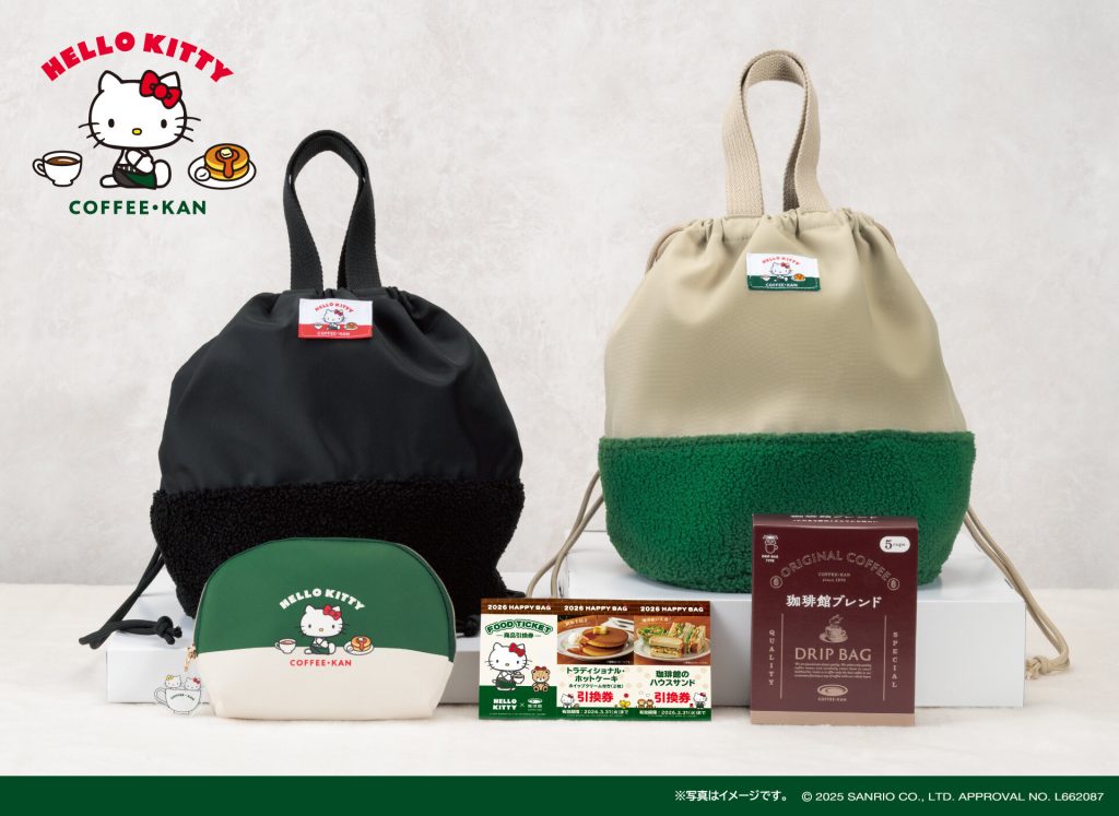 毎年恒例の珈琲館のハッピーバッグ2026が登場!ハローキティとの“初コラボ”アイテム入りの特別セットです。