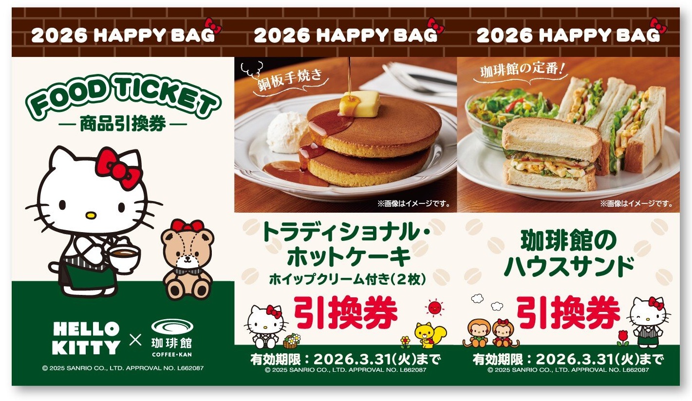 毎年恒例の珈琲館のハッピーバッグ2026が登場!ハローキティとの“初コラボ”アイテム入りの特別セットです。