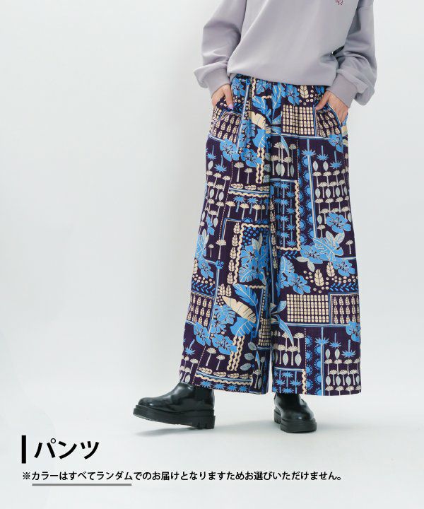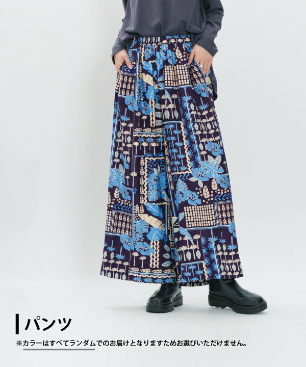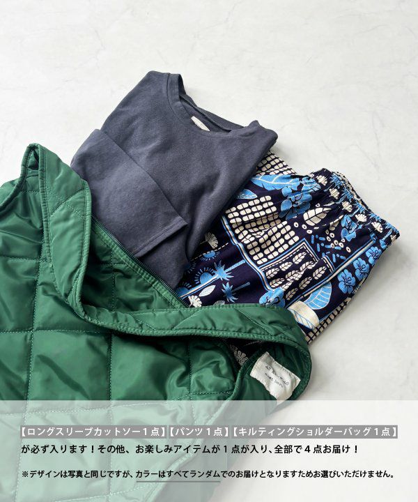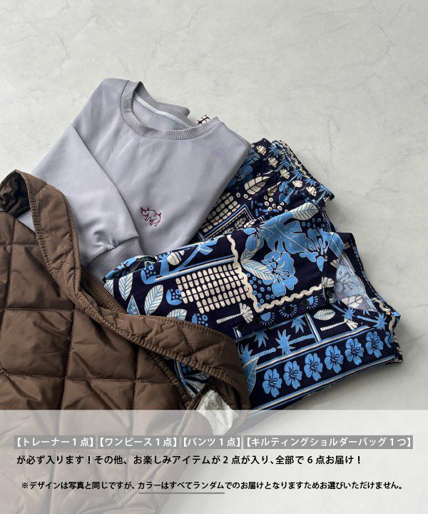 柄ワンピース・柄ワイドパンツ・トレーナーが必ず入る5点+オリジナルバッグのプレミアムセット。