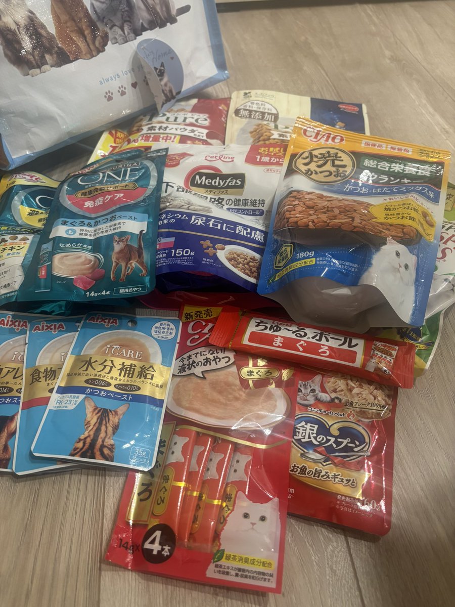 1000円でいろいろ入ってるの嬉しい🤍起きたら食べようね(=・ω・=) #猫好きさんと繋がりたい #猫のいる生活