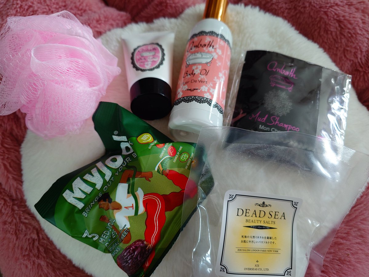売られてるの全部はいってこれは安いなって。ボディオイル、ボディクリーム、バスソルト、デーツ、シャンプー、コンディショナー…全部イスラエル産。