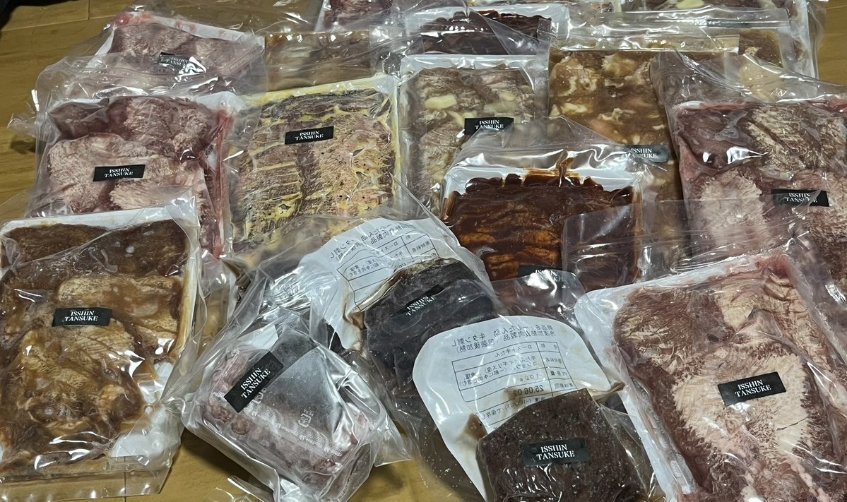 一心たん助の福袋とどいた!!!牛タンパーティーできるぞ🥳🥳小分け包装だったので冷凍庫も一籠で余裕でした(余裕とは)