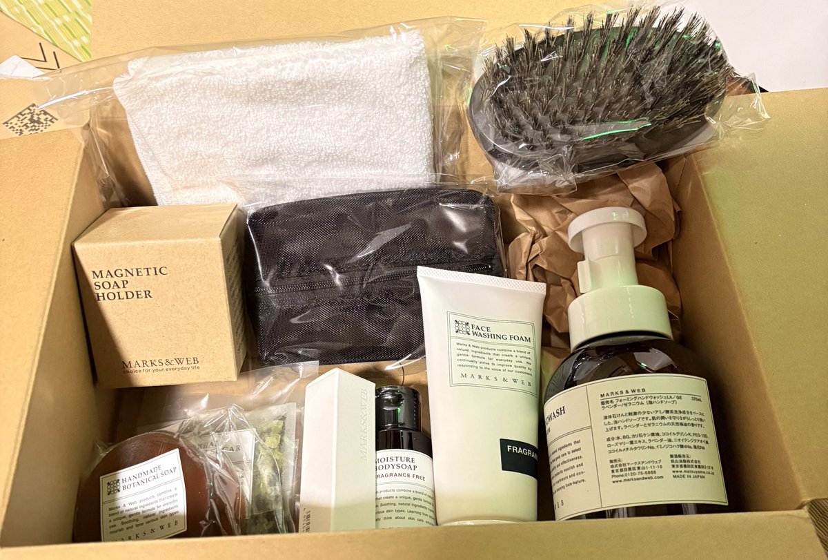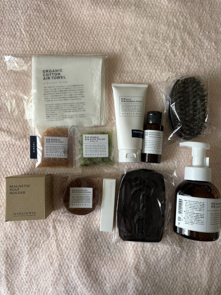 マークスアンドウェブmarks&webのサンクスセット届いた。お得ではあるけど、他の人の投稿見るとハズレだな〜。マグネティックソープホルダーが特に💦