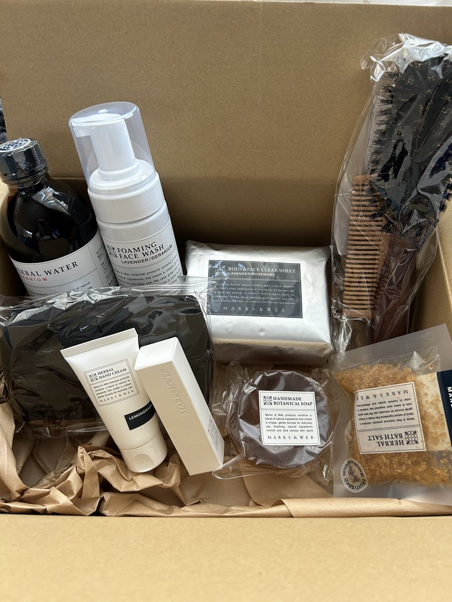 マークスアンドウェブサンクスセットが届きました⭐︎初めてのアイテム使うの楽しみです!サンクスセットから我が家の定番に移行したアイテムもあります。今回の気になるアイテムはハーバルクリアソープとウッドコーム✨