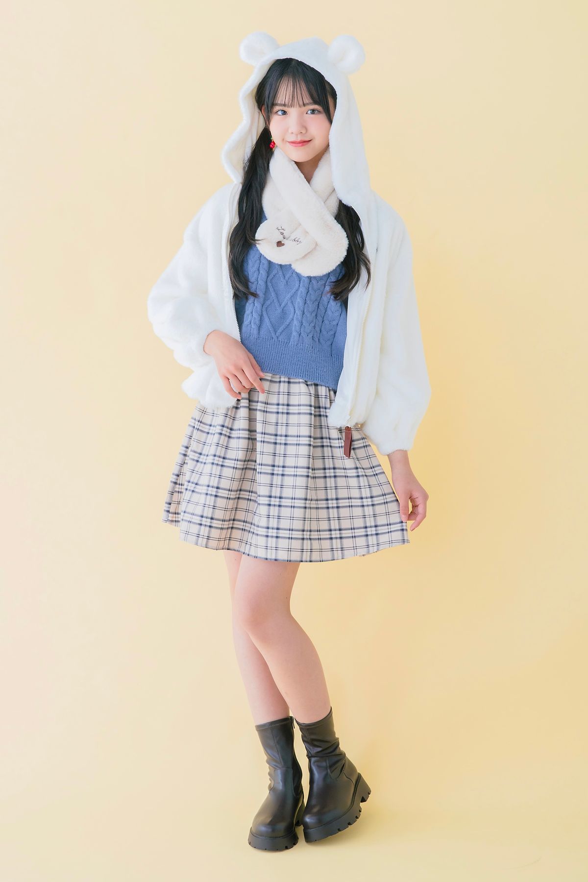 ふわもこクマ耳パーカやマフラー、通学にも使いやすいドッキングトップス&レースアップスカート入りのガーリー×プレッピースタイル♡