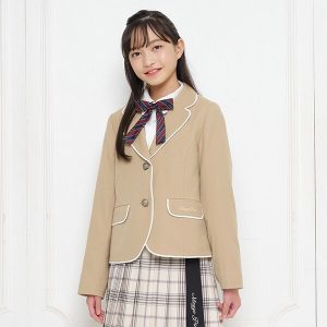 配色パイピングを効かせてシャープかつ明るい表情に仕上げたテーラードジャケットです。やや短めの丈感はプリーツスカートにぴったり。肩パットが入っているのできちんと見えするシルエットがキープされます。セレモニーには欠かせない紺色と、きちんと感の中にも甘さをプラスしたいコーデにおすすめのベージュの2色をご用意しました。