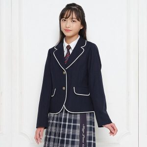 上品でさわやかな印象のセーラーカラージャケットとジャンパースカートのセットです。