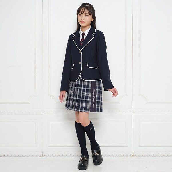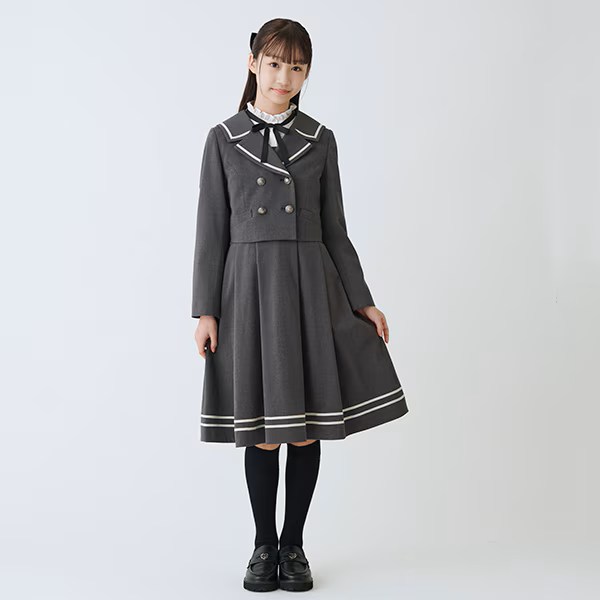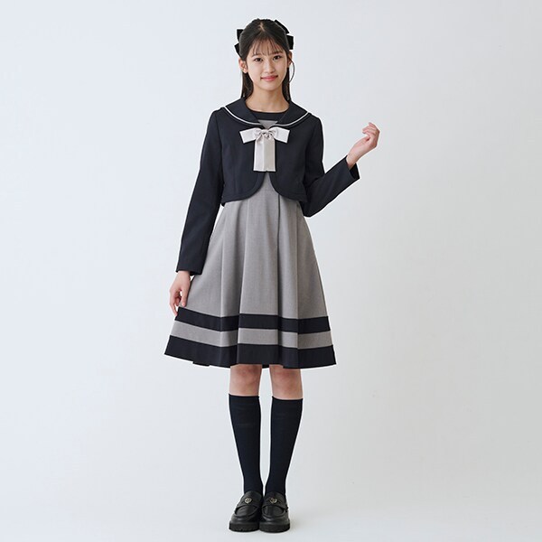 上品でさわやかな印象のセーラーカラージャケットとジャンパースカートのセットです。