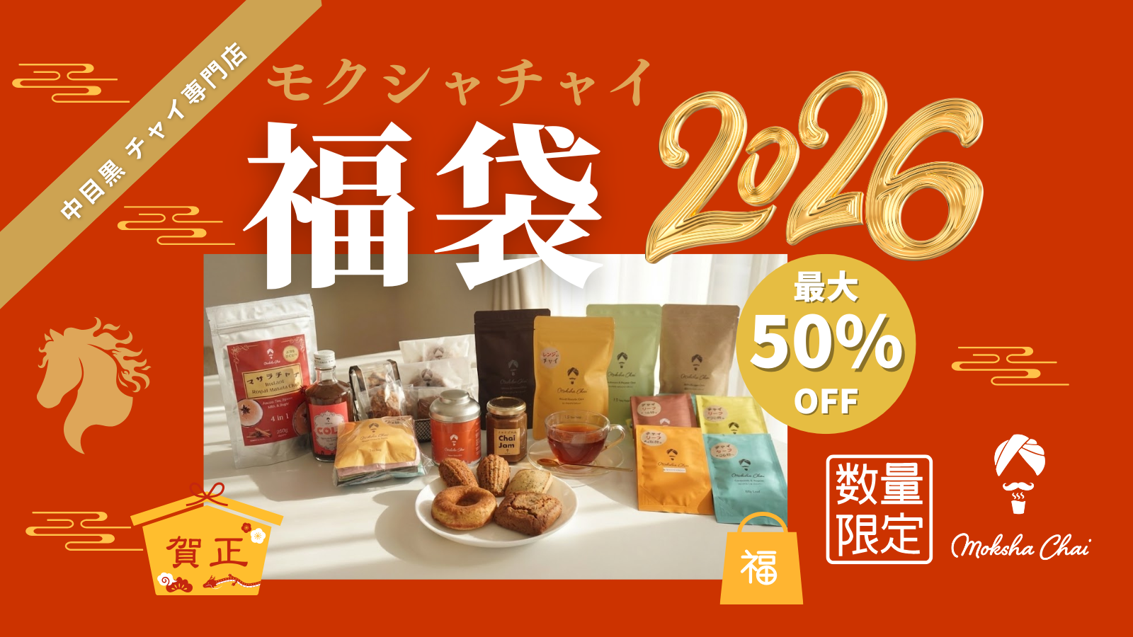 モクシャチャイの福袋は、香り高いチャイ好きにはたまらない詰め合わせ!茶葉やスパイスがたっぷり入っていて、開けた瞬間から幸せなティータイムが始まります。毎年人気なのでチェックはお早めに!