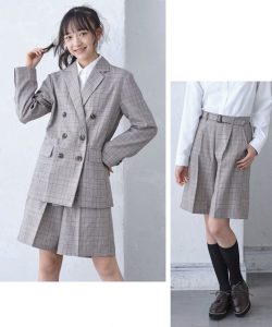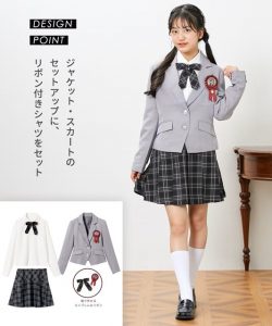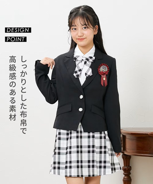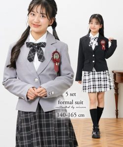 卒業式におすすめ!チェック柄スカートにジャケット・ブラウスをセットしたフォーマルスーツです。