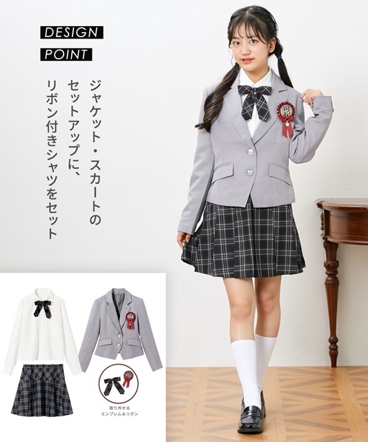 ・取り外し可能のリボンタイやエンブレムでかわいさも演出