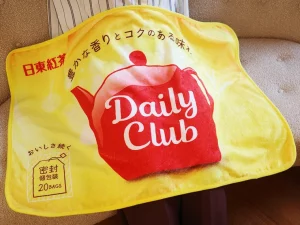 ・デイリークラブのパッケージをそのまま大きくしたようなデザインの箱&ブランケットは、紅茶ファン必見の限定デザインです。