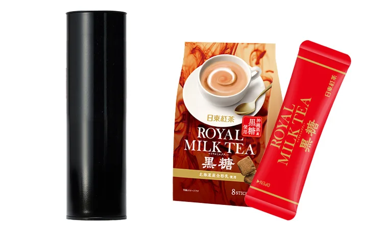 ✔ 紅茶にも使える筒型缶入り「ロイヤルミルクティー黒糖」試供品(1 stick) 付き
