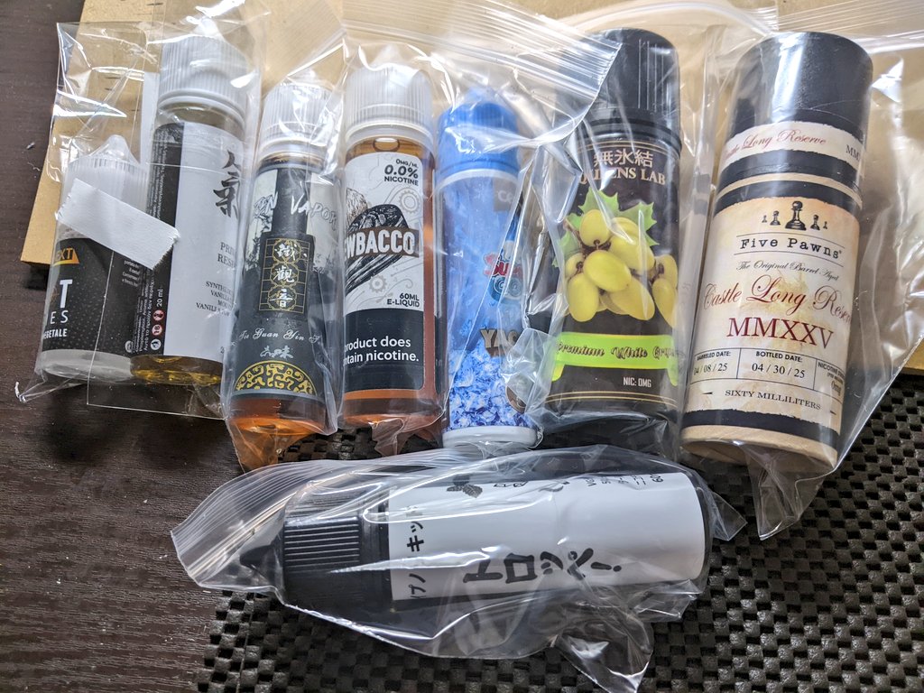 オフィスエッジさんから訳ありリキッド福袋着弾!! 全部知らないリキッドだけど全部美味そう、、 楽しみ! #福袋 #オフィスエッジ