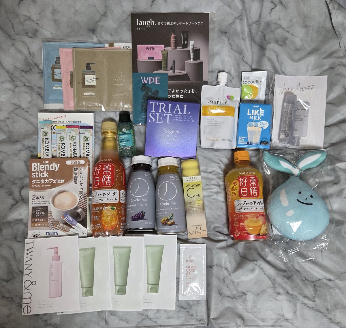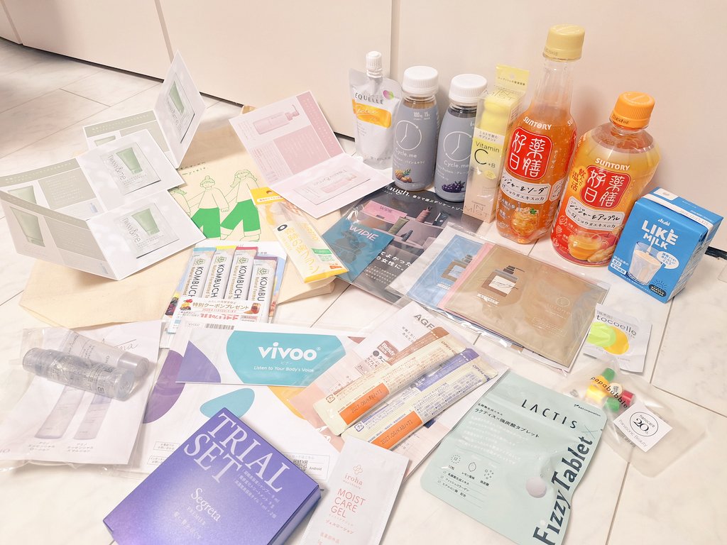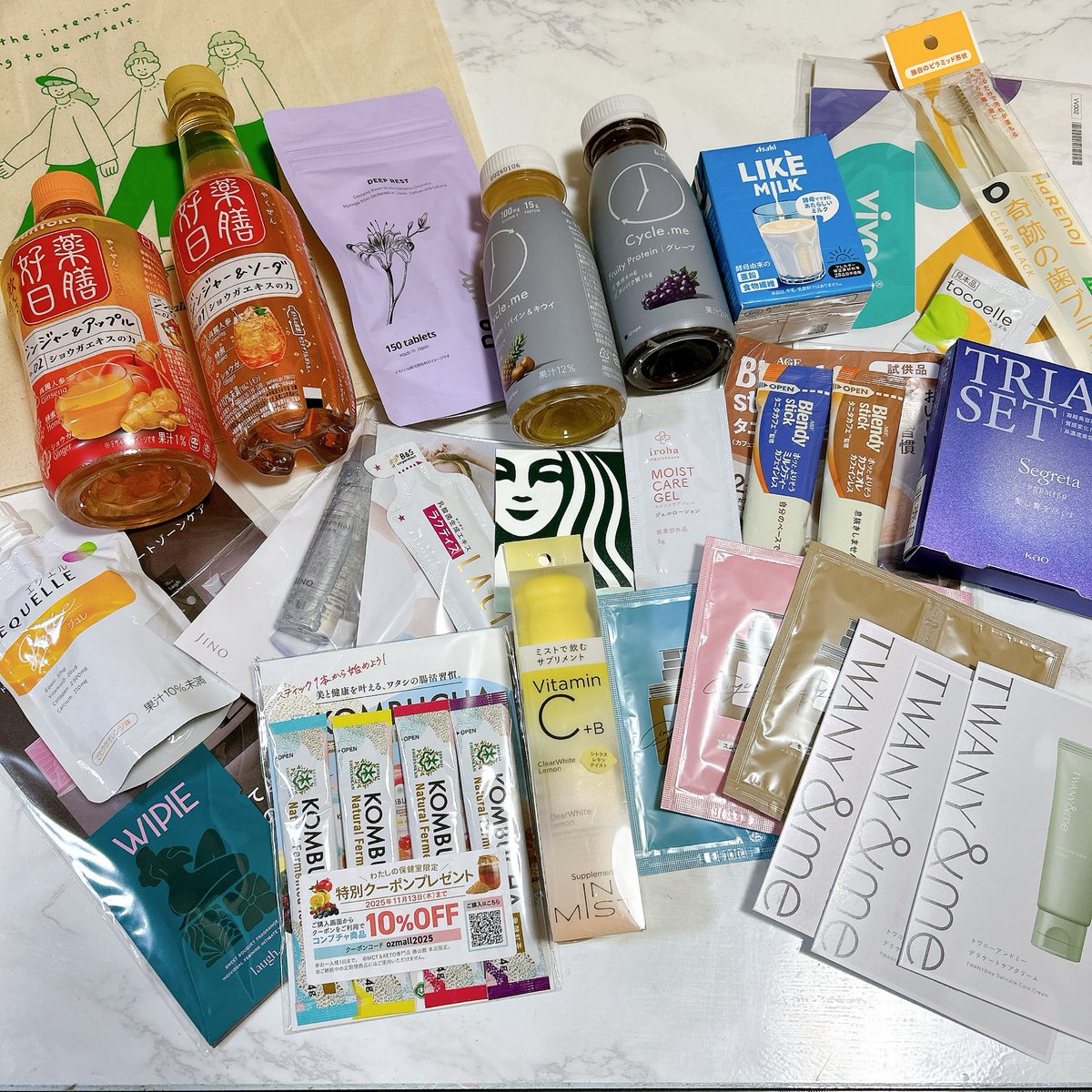 上段はブースでもらったものです!!✔︎サントリー薬膳好日は商品に限りがあるみたいので、早めに行ったほうが◎