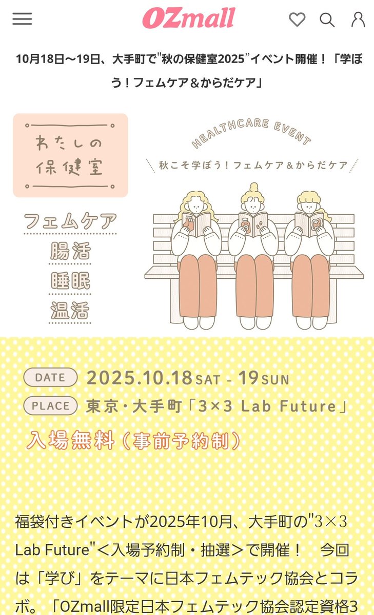 #わたしの保健室2025 #OZmall ということで、「わたしの保健室2025秋」イベントに抽選当たった😆ので参加させていただいた!お土産もあるし、短い時間でぎゅっと楽しめたので、来年もあったら参加したいなぁ〜☺️
