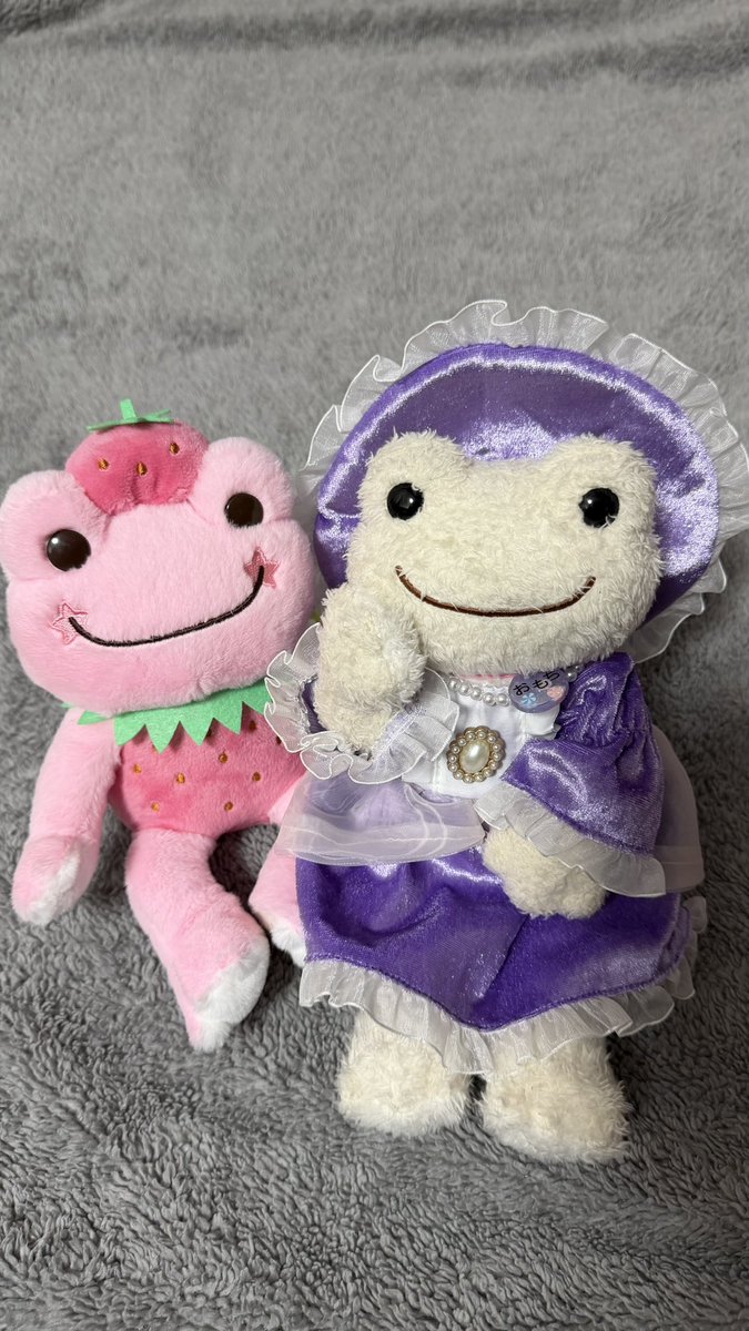 ピクルス ザ フロッグ福箱はこんな感じでした💫 みなさんいろいろなパターンがあるようで見てて楽しい💓 いちごちゃんかわいいし、ドレスも欲しかったので大満足🥰ドレスは早速着せてみたけど、おもちには似合っていない気が😅 #かえるのピクルス