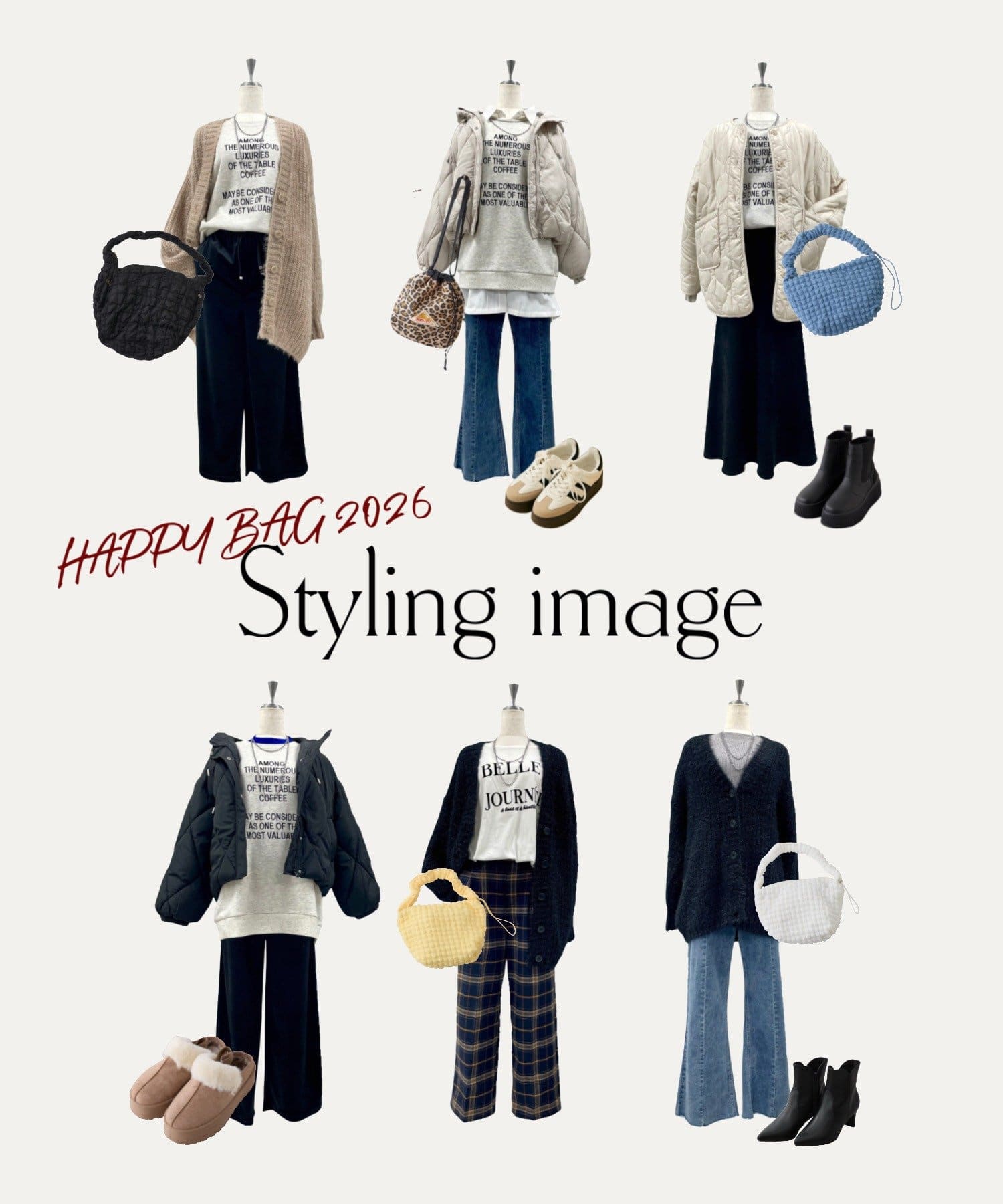8,800円(税込) 福袋:アウター・スウェット・パンツ・カーデ・バッグ・セットアップまで網羅の6点。単品使いもしやすい実用派。