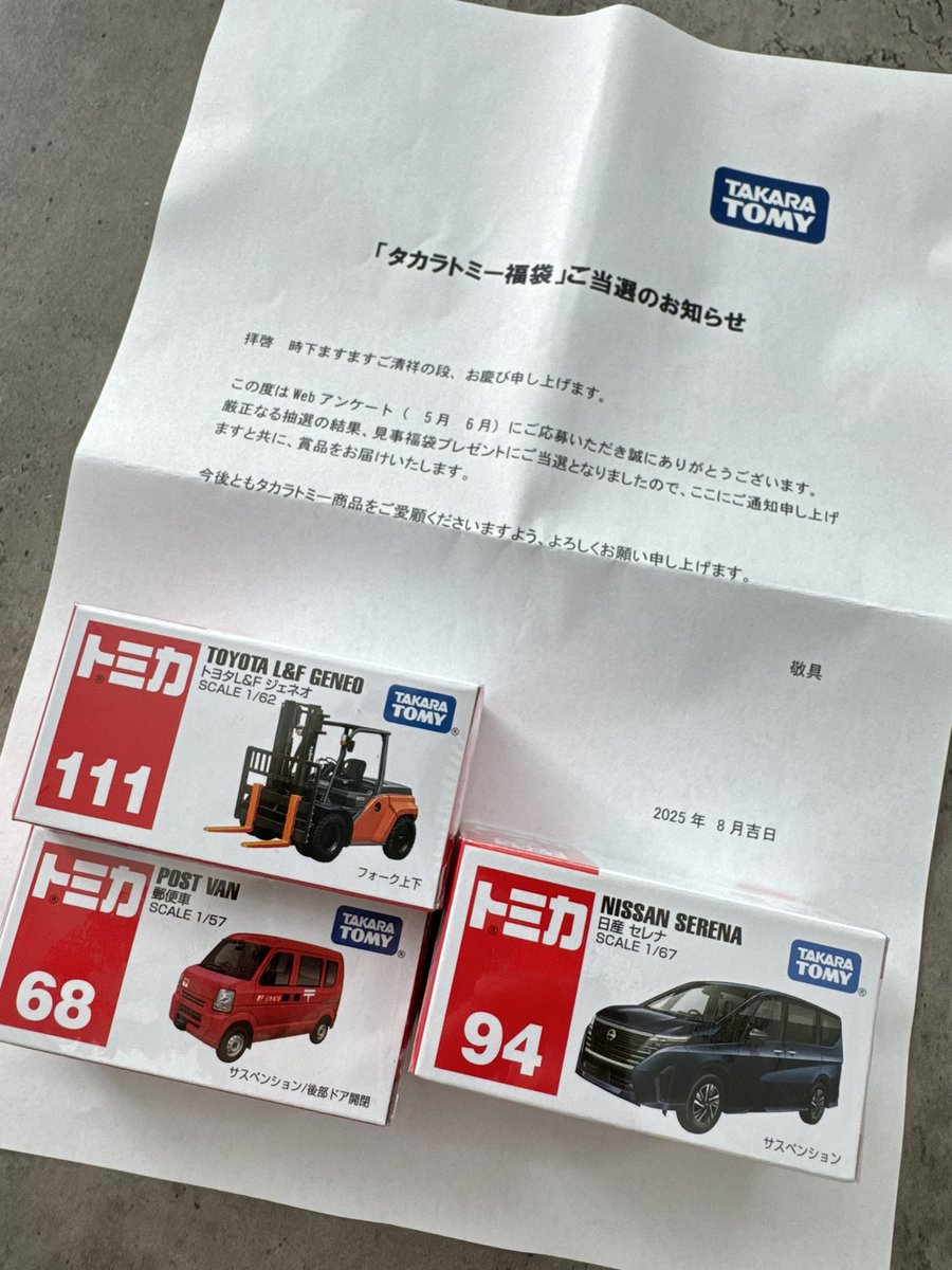 タカラトミーの福袋当選したっ😊