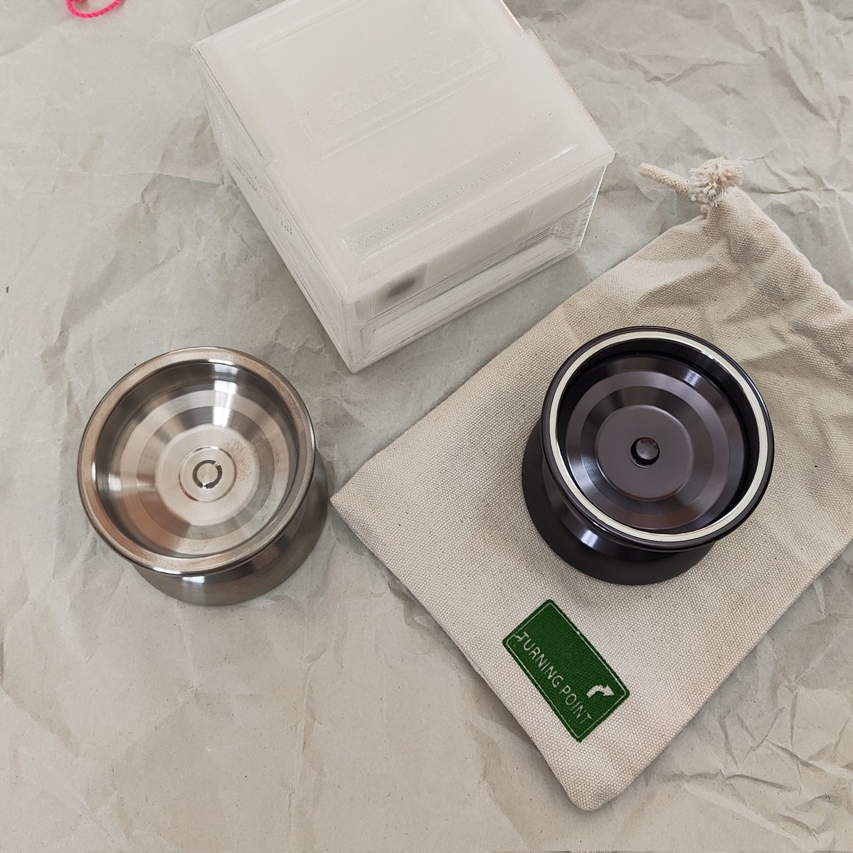 左のはマグネシウムのバイメタル?直径50mmくらいで幅46mmくらい、ターニングポイント2に似たサイズのやつ…