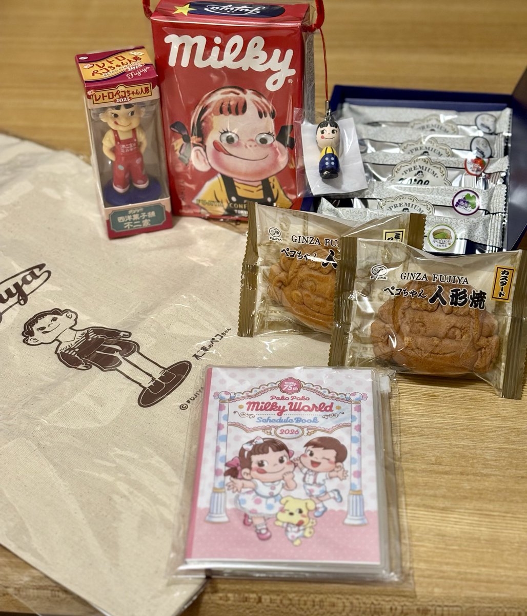 不二家不二家でお楽しみ袋みたいなの売ってたから買ってみた😋ノベルティでスケジュール帖もくれた❤️