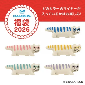 メガネブランドZoffの福袋2026が登場!スウェーデンの人気陶芸家リサ・ラーソンとのコラボで、猫のマイキーが登場する特別仕様です。